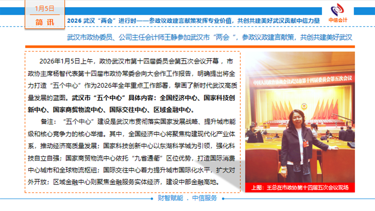 ——武汉市政协委员、中信主任会计师王静参加武汉市“两会“,参政议政建言献策,共创共建美好武汉!