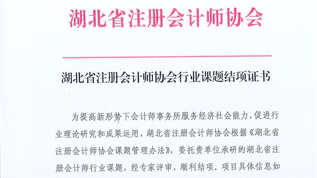 01/072026湖北中信会计师事务所承研的2025年湖北省注册会计师协会行业课题顺利结项
