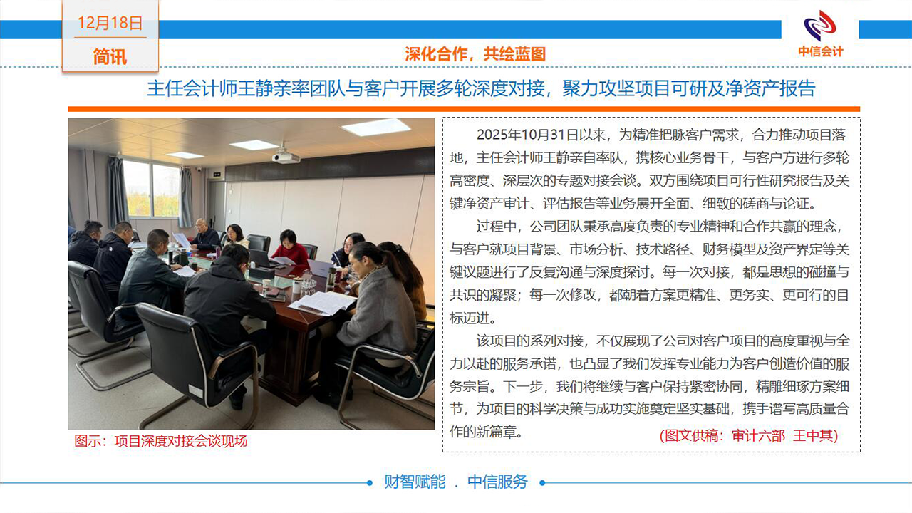 ——主任会计师王静亲率团队与客户开展多轮深度对接,聚力攻坚项目可研及净资产报告 -