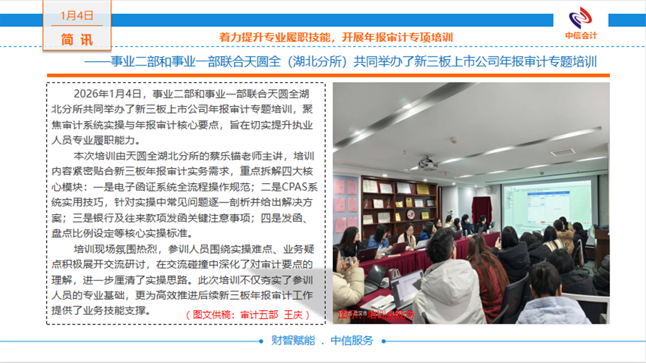 着力提升专业履职技能,开展年报审计专项培训